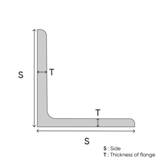 El ángulo de lados iguales es un perfil comercial laminado en caliente (negro) con una sección en ángulo recto y las alas o lados de igual longitud. Su calidad es la S275JR, empleada para el acero estructural que cumple con la norma EN 10025-2.