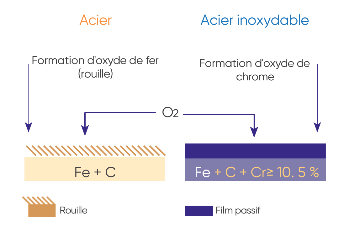 Réaction de l'acier et de l'acier inoxydable au contact de l'humidité de l'air ou de l'eau